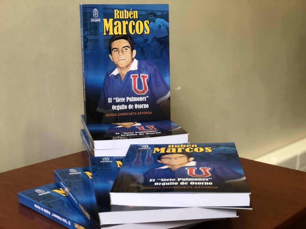 En una actividad realizada en Sala de Sesiones, se presentó oficialmente el libro “Rubén Marcos: El Siete Pulmones, Orgullo de Osorno”, que repasa la trayectoria del mejor futbolista osornino de todos los tiempos, que brilló en el mítico “Ballet Azul”, de la Universidad de Chile, obteniendo cinco campeonatos con dicha escuadra, además de defender a nuestro país en el Mundial de Inglaterra de 1966. Este texto literario, escrito por el destacado autor nacional Sergio Zarricueta, aborda, en sus 247 páginas, la vida de Rubén Marcos, desde su infancia hasta su carrera profesional.“Viene a ser un aporte importante a las futuras generaciones que, gracias a este libro, podrán interiorizarse de la brillante trayectoria de este deportista”, destacó, al respecto, el administrador municipal, Claudio Villanueva.Por su parte, el escritor Sergio Zarricueta sostuvo que “hoy en día es clave rescatar el legado de los ídolos de antaño, pues la historia del fútbol chileno se nutre del gran aporte de jugadores como Rubén Marcos Peralta”.En la presentación se dio a conocer que este material estará disponible en las bibliotecas de la ciudad, como también en las escuelas de fútbol y en los establecimientos educacionales.