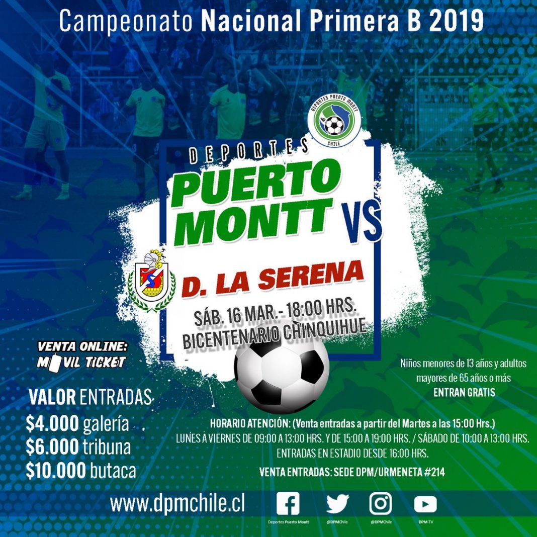 Partido válido por la quinta fecha del Campeonato Primera B 2019, donde Deportes Puerto Montt enfrentará a Deportes La Serena. El encuentro está pactado para este sábado 16 de marzo a las 18:00 horas en el estadio Bicentenario Chinquihue.