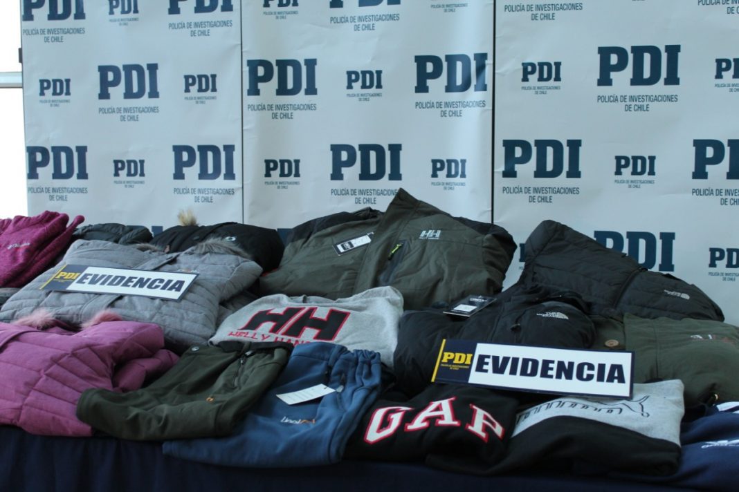 Más de 500 prendas de vestir de marca falsificadas decomisó la PDI en una feria itinerante de Puerto Montt, seis comerciantes ambulantes fueron detenidos.