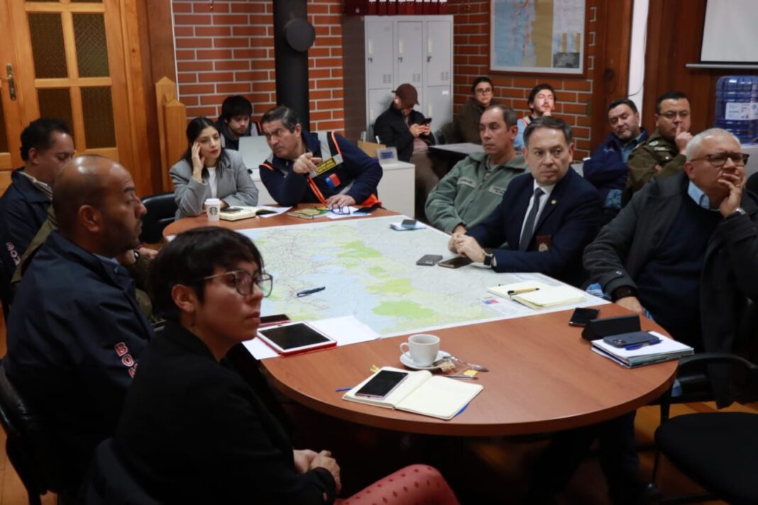 En la reunión de trabajo participaron representantes de la Dirección Meteorológica de Chile, Sernageomin, la Dirección General de Aguas y el Servicio Meteorológico de la Armada, junto con miembros de Carabineros, la Policía de Investigaciones, las Fuerzas Armadas y Bomberos, además de los y las seremis de Obras Públicas, Energía, Vivienda, Mujer y diversos servicios del Estado.