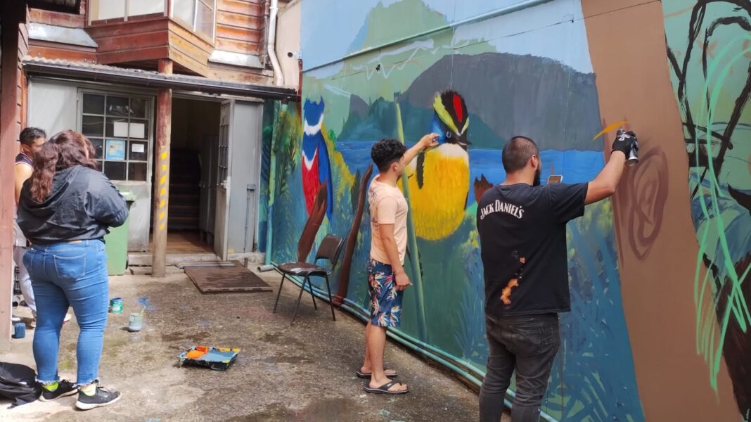 En la creación del mural participaron cuatro jóvenes en proceso de reinserción social, quienes demoraron 25 horas cronológicas de trabajo, distribuidas en bloques semanales que se extendieron por todo el mes de febrero, complementando otras tareas que también son parte de las rutinas diarias, como trabajar, concurrir a intervenciones psico-sociales o estudiar.