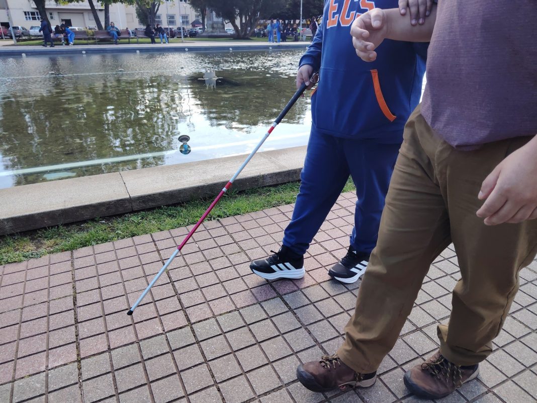 La Organización de Ciegos Emprendedores de Osorno y la Oficina de la Discapacidad del municipio realizaron, en plaza de armas de la comuna, una jornada de sensibilización en torno a personas con reducción total o parcial de la visión.