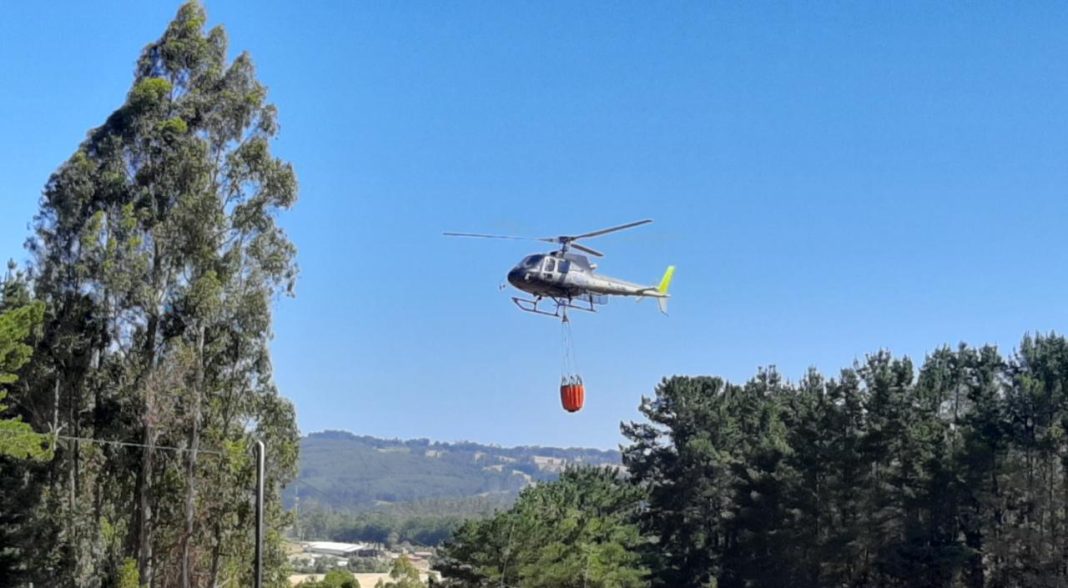 A esta hora siguen trabajando arduamente las brigadas de Conaf y voluntarios del Cuerpo de Bomberos de Osorno para mantener contenido el incendio forestal que comenzó el día de ayer en el sector de Pucoihue en Osorno y que hasta el momento ha arrasado con más de 400 hectáreas de bosque y plantaciones.Durante la noche del jueves se reunió el Comité Operativo de Emergencia Comunal, COE, en la escuela del sector para analizar las acciones a seguir debido al siniestro que calcinó 6 cabañas y un galpón, sin moradores, y que amenaza a esta hora a unas 15 viviendas tanto en Pucoihue como en Murrinumo, lugar al que se extendió.El director regional de ONEMI Los Lagos, Alejandro Vergés, señaló que durante la noche el incendio pudo ser contenido gracias a la humedad, aunque hizo un llamado a organizaciones que quieran ayudar a que no vayan al lugar.Por su parte, el alcalde subrogante de Osorno, Claudio Villanueva, indicó que están preocupados por el peligro que tienen algunos inmuebles de ser alcanzados por las llamas a esta hora, además de que el municipio puso a disposición camiones aljibes y maquinaria.En tanto, el jefe provincial Osorno de Conaf, Richard Hueitra, afirmó que el origen del siniestro sería intencional y que hay 20 brigadistas trabajando en el lugar, con la ayuda de bomberos y un dron, además de tres helicóptero de la Corporación que están sobrevolando el lugar para monitorear y detectar focos de incendio.Asimismo, el 2do Comandante de Bomberos de Osorno, Felipe Ponce, pidió a la ciudadanía que no se acerquen al lugar para así mantener despejado el flujo de los carros de la institución para trabajar de mejor manera.Ayer trabajaron 178 voluntarios de Bomberos de Osorno de todas las compañías, mientras que hoy hay tres carros y 15 voluntarios realizando labores de contención en puntos calientes y sitios cercanos a las viviendas que corren riesgo de ser alcanzadas por las llamas.