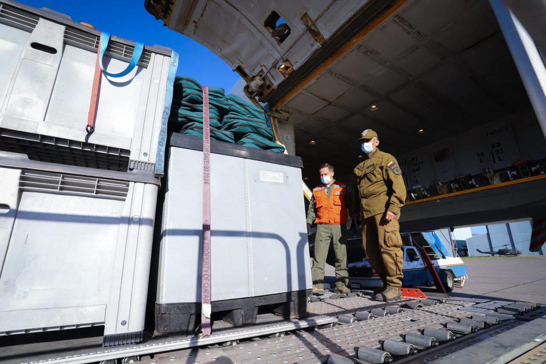 Desde el Grupo de Aviación 10 FACH partió este jueves el primer avión con la infraestructura que permitirá instalar un campamento para apoyar los trabajos logísticos de Carabineros y reforzar el contingente policial en la frontera en la zona de Colchane.