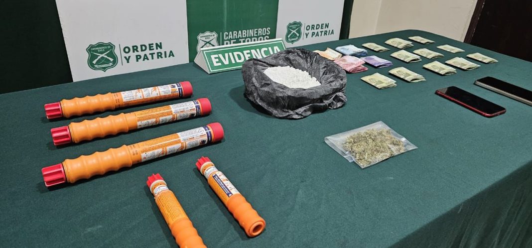 Personal del OS7 de Carabineros, ejecutando una orden de entrada, registro e incautación emitida por el Juzgado de Garantía de Puerto Montt, allanó dos domicilios en el sector de Alerce Sur incautando droga, elementos para su distribución, bengalas, teléfonos y dinero en efectivo.