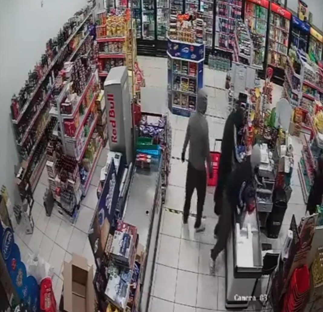 En un registro audiovisual se puede apreciar que un grupo de tres individuos ingresan al local con armamento, sustrayendo dinero y alcohol.