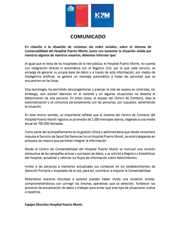 Dos familias de la región de Los Lagos denunciaron en las últimas horas que fueron contactadas desde el Hospital Regional de Puerto Montt para confirmar una hora de atención con especialistas, sin embargo, los pacientes que estaban en lista de espera ya habían fallecido.
