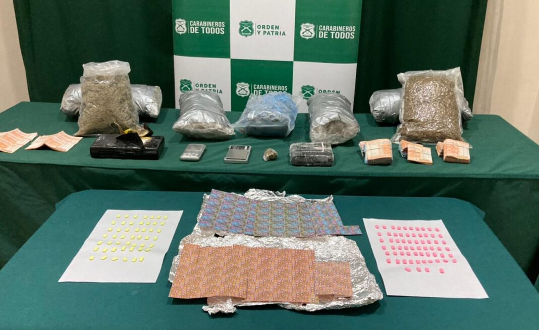 Carabineros de la Primera Comisaría de Osorno dio cuenta de un nuevo decomiso de droga, logrando desarticular a una nueva banda criminal dedicada al tráfico.El teniente coronel Marcelo Salas, Prefecto de Carabineros Osorno, informó que junto a colaboración de personal de la Fiscalía Local de Puerto Montt se detuvo cuatro hombres de nacionalidad colombiana y a una mujer de nacionalidad chilena.Los involucrados conseguían las drogas en Santiago para distribuirlas en Osorno y Puerto Montt.El funcionario policial detalló que entre los estupefacientes ilícitos decomisados se encuentran marihuana, clorhidrato de cocaína, estampillas de lsd, éxtasis. Además, se decomisó dinero en efectivo y vehículos.Cabe destacar que esta es la segunda organización criminal desarticulada en menos de 72 horas en la Provincia de Osorno.Por disposición del ente persecutor, los detenidos pasaron a control de detención en el Juzgado de Garantía de Puerto Montt