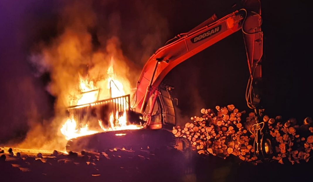 Un nuevo ataque incendiario ocurrió en la Región de Los Ríos, afectando esta vez a camiones y a maquinaria forestal en el acceso sur a Valdivia.