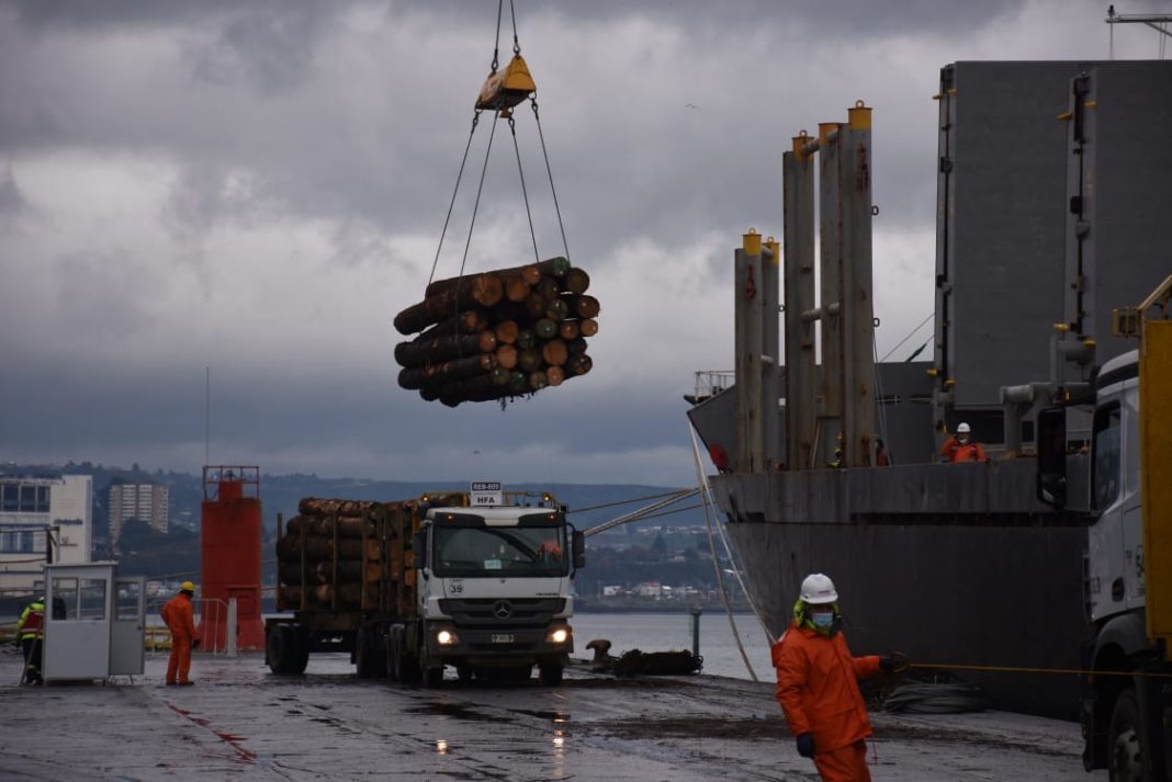 En el recinto portuario de EMPORMONTT se lleva a cabo la operación de carga de la primera exportación de rollizos de pino a granel que exportará el país y cuyo destino es el mercado de China. Se trata de 110 mil rollizos de pino insigne que viajarán al gigante asiático a bordo del carguero Union Ethos para ser utilizados en la confección de muebles y maderas para construcción.