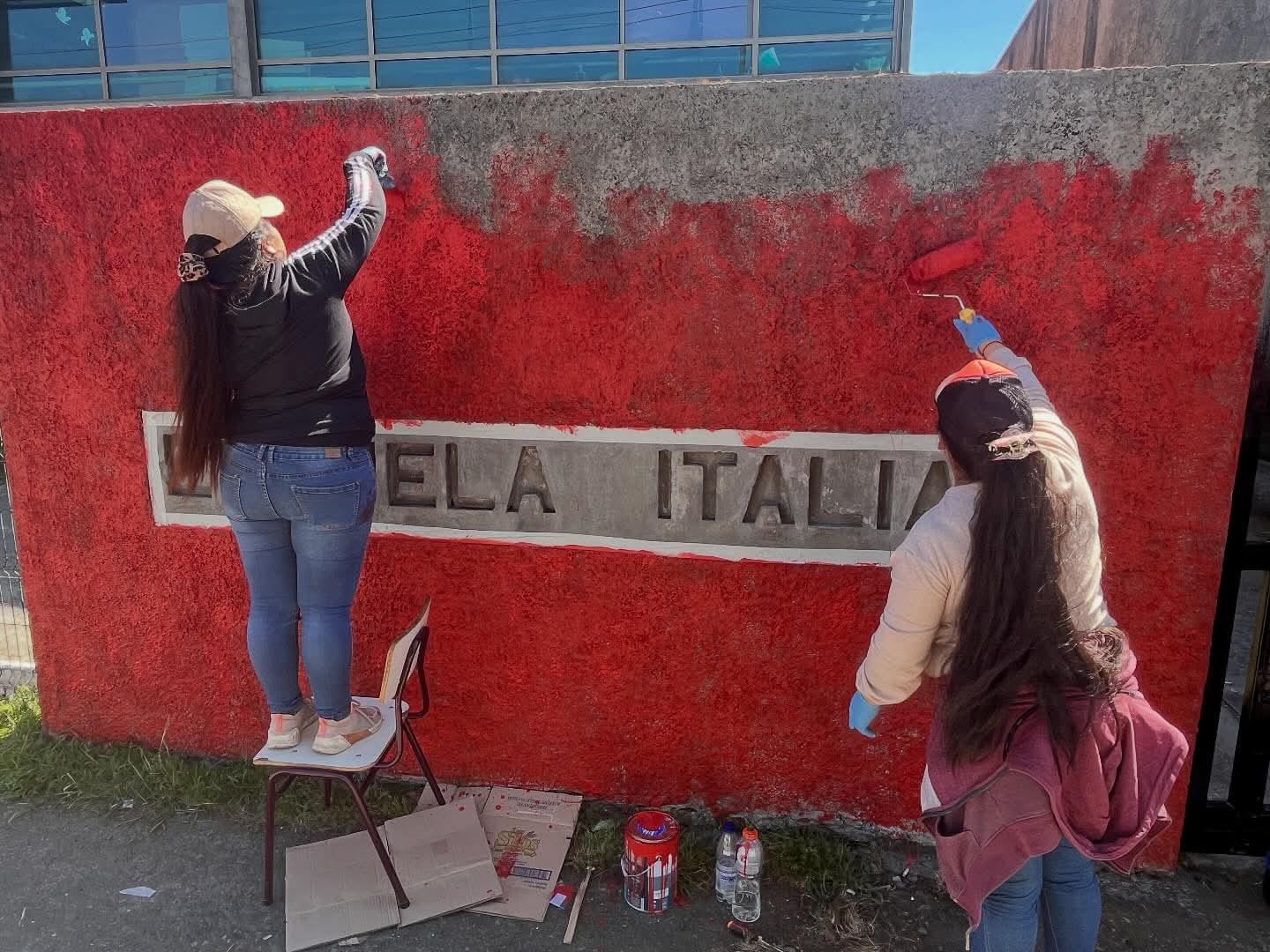 “Yo cuido mi escuela” es el proyecto que ejecutó la comunidad educativa de la Escuela Italia, en el corazón de Rahue Bajo y cuya ejecución fue realizada por apoderados, asistentes y docentes quienes limpiaron y pintaron muros y rejas, además, de recuperar áreas verdes.