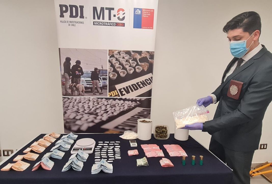 Uno de los detenidos tenía una orden de detención vigente, señaló el subprefecto Ronny Salgado, jefe de la Brianco Osorno, quien detalló las cantidades de drogas incautadas, además de dinero y elementos de dosificación.