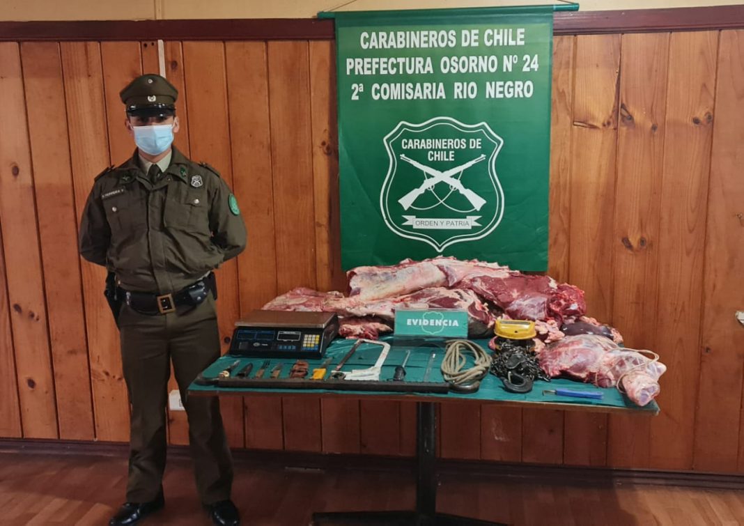 Carabineros de la 2ª Comisaria Rio Negro, en el marco de la intensificación de servicios policiales por control de abigeato, detuvo a 2 personas por matadero clandestino, quienes portaban más de 80 kilos de carne en una camioneta.