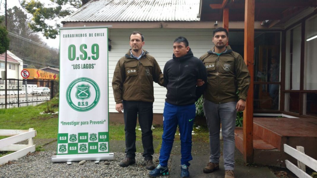 Luego de amplias diligencias la OS-9 de Carabineros detuvo al líder de una peligrosa banda delictual en la ciudad de Puerto Montt. Se trata de un sujeto de 27 años de edad, quien participó junto a otros delincuentes de un robo con intimidación contra la conocida carnicería “La Perla de Sur”, de la capital regional, el pasado 31 de diciembre del año 2015. En la oportunidad la banda integrada por 4 antisociales en forma violenta y premunidos de armas de fuego perpetraron el atraco, llevándose del lugar la recaudación del día entre otras especies. El sujeto- un peligroso delincuente- registra un amplio curriculum delictual con más de 15 anotaciones penales por distintos delitos. La investigación se llevó a cabo por más de dos meses, realizando un sin número de diligencias investigativas y de análisis criminal que terminó con la detención del sujeto.