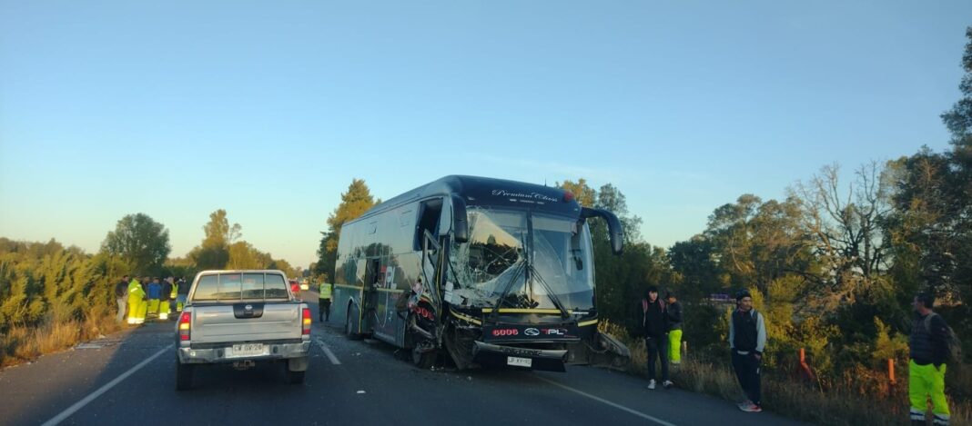 Por causas que se investigan, a la altura del kilómetro 26,1, sector Moncopulli, un vehículo menor colisionó de frente con un bus que transportaba trabajadores.