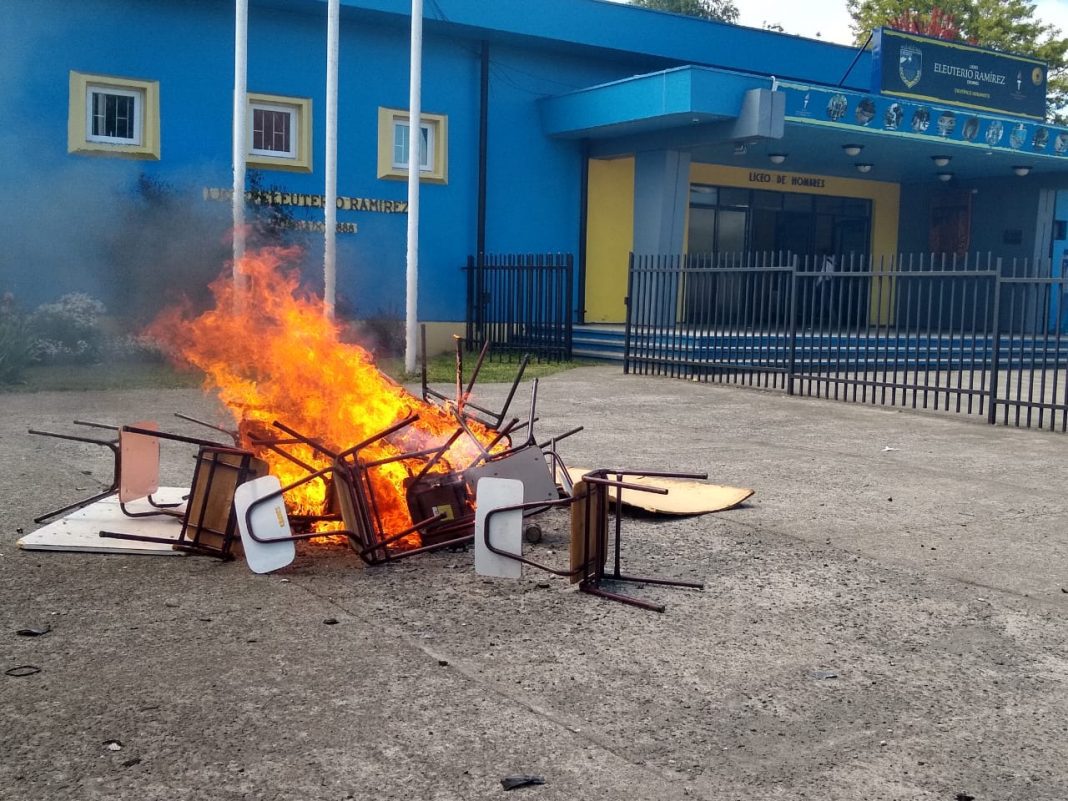 A eso del mediodía, estudiantes del Liceo Eleuterio Ramírez decidieron realizar la misma acción en el establecimiento ubicado en calle Freire.