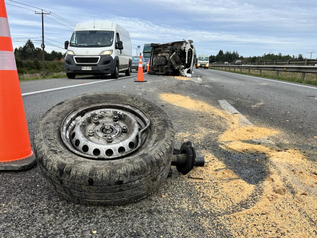 Dos personas lesionadas deja volcamiento de furgón que transitaba por la Ruta 5 a Puerto Montt