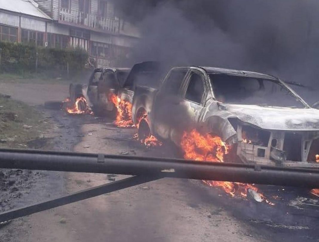 Dos vehículos utilizados aparentemente por Carabineros de civil en un operativo terminaron quemados en una comunidad del sector de Elicura, en la provincia de Arauco.