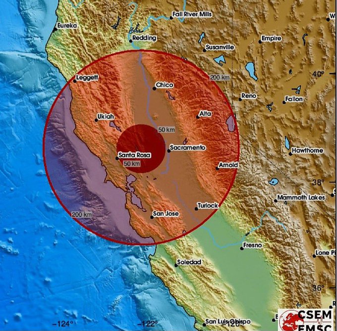 El movimiento telúrico fue seguido -a los tres minutos- por una réplica de magnitud 5,8 a 9 kilómetros de Cobb, en el norte de California, y otras tres de 3,3; 3,7 y 4,2 respectivamente, según los datos de USGS.