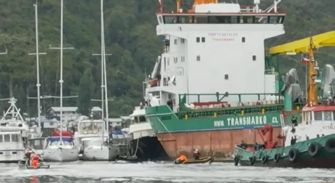 Los hechos ocurrieron en la Marina Oxxean, ubicada en el sector de Chinquihue, frente a isla Tenglo, en instantes en que la motonave “Puerto Natales” de la empresa Transmarko ingresó al lugar sin la autorización correspondiente, provocando una colisión que pudo convertirse en una tragedia, pero providencialmente no dejó lesionados.