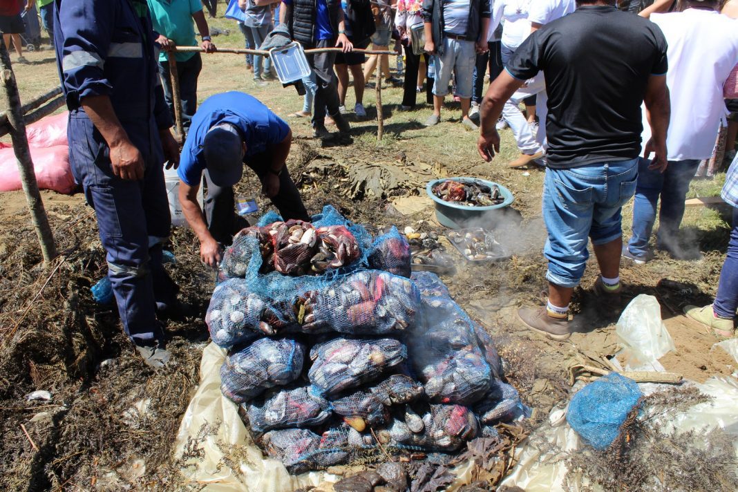 Finalmente para este curanto gigante se necesitaron 22 toneladas de mariscos, entre cholgas, choritos, picorocos, piures y almejas, esto para completar los 21 hoyos cavados en la tierra. También, se utilizaron seis sacos de papas de 30 kilos cada uno, 20 kilos de longanizas, 25 kilos de carne de cerdo, entre otros insumos.