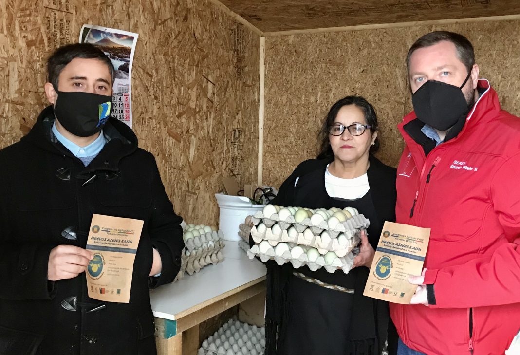 Familias huilliches posicionan el huevo azul como alimento funcional  Seremi de Agricultura Eduardo Winkler destacó trabajo de familias huilliches de Río Negro que se asociaron para rescatar un producto tradicional y darle valor comercial. Con el propósito de dar valor a un producto tradicional, nueve familias huilliches de Río Negro trabajan en el rescate de la producción de huevos azules para potenciarlos como un súper alimento. Una iniciativa que da vida a la Cooperativa Agrícola Kalfú que busca hacerse un lugar en el mercado de los alimentos funcionales.   El Seremi de Agricultura Eduardo Winkler destacó la capacidad innovadora de este emprendimiento que pretende diferenciarse a partir de un producto con relato ancestral y propiedades nutricionales.  Patricia Barrientos, una de las socias de la Cooperativa Agrícola Kalfú, explicó que la producción de huevos azules se realiza en base a un criadero de gallinas felices, alimentadas con productos naturales de la zona y, además, cuentan con una incubadora automatizada de alta tecnología con capacidad para 390 huevos, que ayuda a la reproducción de las gallinas criollas de huevos azules, con huevos ricos en Omega 3 y antioxidante, especiales para diabéticos y cardíacos.  Así, con una dieta especial de alimentación de las gallinas, se logra un huevo con características diferenciadoras, no sólo por su cobertura azul de la cáscara, sino también por sus valores elevados de Omega3 y antioxidantes.  El alcalde de Río Negro, Carlos Schwalm, subrayó el esfuerzo realizado por esta agrupación que apostó por realizar un trabajo diferenciador, vendiendo huevos con historia y trazabilidad.   A través de una página web (agricolakalfu.cl) y algunos negocios asociados la Cooperativa Agrícola Kalfú ha logrado hacerse un espacio en el mercado de alimentos funcionales, tras recibir apoyo de la Fundación para la Innovación Agraria (FIA) y el Centro de Estudios de la Universidad de Santiago (CEUS) con sede en Llanquihue.   Familias huilliches posicionan el huevo azul como alimento funcional Familias huilliches posicionan el huevo azul como alimento funcional
