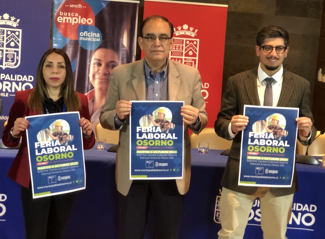 Mil cupos de empleo ofrecerá el próximo martes 4 la “Feria Laboral Osorno 2022”, que se realizará en el Centro Cultural de la ciudad, en Matta 556, y que es organizada por el Ministerio del Trabajo, a través del Sence, con el apoyo de las OMIL de Osorno, Purranque, Río Negro y San Pablo, y donde participarán más de 20 empresas, con presencial local y regional.El lanzamiento de esta actividad, que tendrá lugar entre las 09:00 y 16:00 horas, se efectuó en Sala de Sesiones y fue encabezado por el alcalde Emeterio Carrillo, junto al SEREMI del Trabajo, Ángel Cabrera, ocasión donde el jefe edilicio destacó que “en esta feria existirán ofertas de trabajo en rubros como alimentación, agrícola, retail, hotelería, transporte, entre otros, siendo una oportunidad concreta para quienes se encuentran desocupados y desean obtener un empleo estable, especialmente las mujeres, que se vieron fuertemente afectadas por perder su empleo en la pandemia”.Este evento también dispondrá de personal que orientará a los asistentes a buscar un nicho laboral acorde a sus intereses y necesidades, además de disponer de un stand de impresión para las personas que deseen, por ejemplo, imprimir sus Curriculum Vitae o la documentación necesaria que requieran para postular a uno de los trabajos disponibles. Por su parte, el Seremi del Trabajo, Ángel Cabrera, manifestó que “la recuperación del empleo es fundamental para mejorar la economía nacional y, con ello, la calidad de vida de los chilenos y chilenas. De ahí que esta actividad acerca la oferta laboral a la gente que está desocupada, por lo que extendemos la invitación a asistir a toda la comunidad provincial”.Las empresas que estarán presentes en esta “Feria Laboral Osorno 2022” son las siguientes: