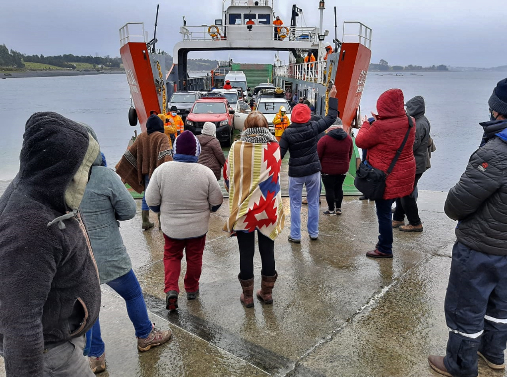 La Presidenta de la Junta de Vecinos de la localidad de Chope, en la Isla Puluqui Claudia Mansilla, explicó que la naviera a cargo del servicio envió a reparación la barcaza y asignó una que si bien tiene capacidad para vehículos, no tiene capacidad para pasajeros, entonces no se puede respetar el distanciamiento social y no se puede viajar en esas condiciones.
