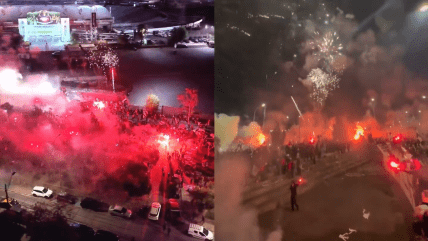 Justo a la medianoche de este domingo, un gran grupo de fanáticos lanzó múltiples fuegos artificiales y encendió bengalas fuera del acceso principal al recinto, en la Avenida Marathon de Macul.