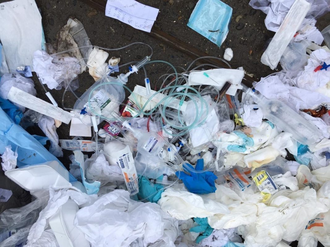 En las imágenes expuestas, se observa que incluso hay desechos etiquetados con nombres y apellidos de pacientes.