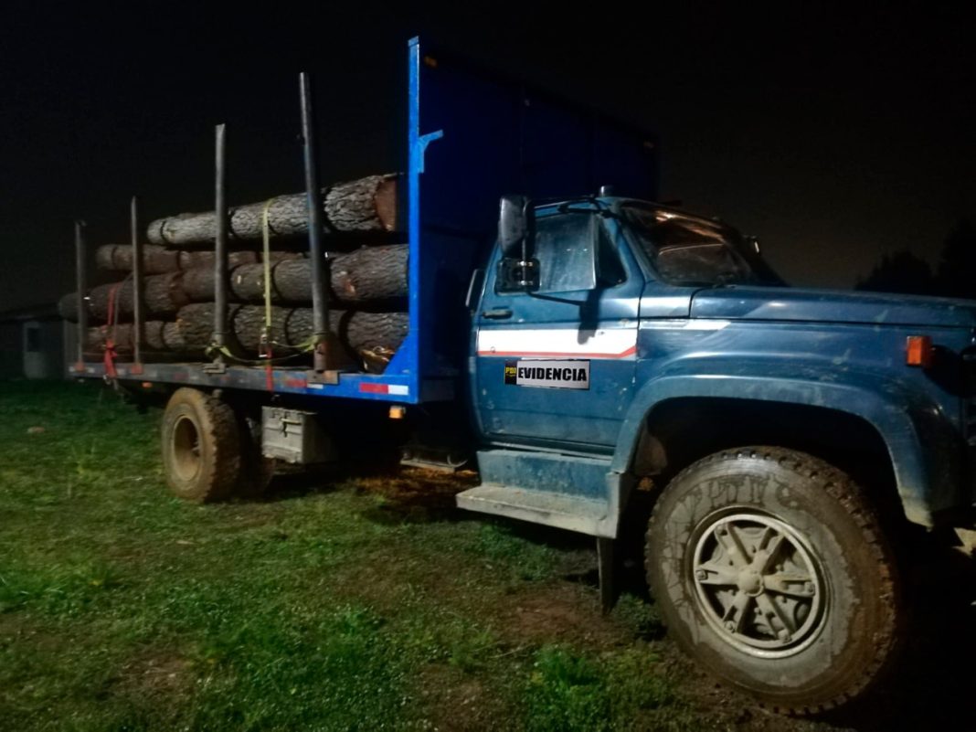 Personal de seguridad de una empresa forestal ubicada en el sector de Tres Chiflones, en el camino que une Valdivia y Corral, divisó a cuatro sujetos cargando madera en un camión y dos camionetas al interior de un predio perteneciente a la empresa la noche de este jueves.Fue por eso que llamaron a la Policía de Investigaciones, quienes, según informaron, llevaban alrededor de cinco meses tras los pasos de este grupo que se dedicaba al hurto de madera.Así lo informó el comisario Cristian Muñoz, de la Brigada de Investigación Criminal Valdivia de la PDI.Las personas detenidas, cuatro hombres de 18, 20, 24 y 27 años sin antecedentes judiciales ni órdenes vigentes, concurrían en horas de la noche a los sectores rurales de esta comuna, con la finalidad de ingresar a los predios forestales procediendo con motosierras a cortar los árboles del lugar para posteriormente cargarlos en un camión y dos camionetas.En el lugar de la detención se incautaron 36 trozos de madera en bruto de pino, 10 trozos de madera de pino y 87 trozos de Eucaliptus respectivamente, además de los vehículos, con un avalúo total cercano a los 18 millones de pesos.