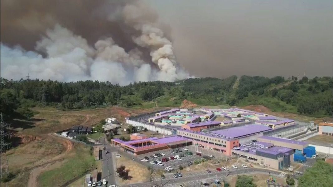 Un incendio forestal de alta intensidad mantiene en alerta a las autoridades en la comuna de Concepción, en la región del Biobío, luego de que las llamas avanzaran hacia el sector colindante al Complejo Penitenciario Biobío, donde se ubican la cárcel El Manzano y el penal Biobío.
