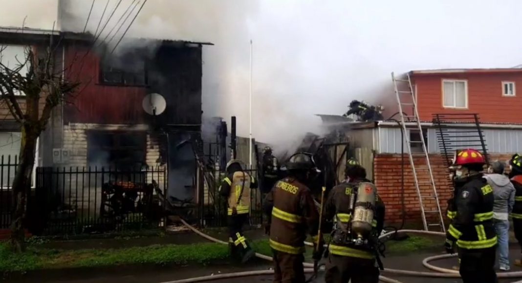 Según información otorgada por el Cuerpo de Bomberos de Osorno, el siniestro se habría originado en el primer piso del hogar, tras quemarse un sillón que estaba a cercano una estufa prendida.