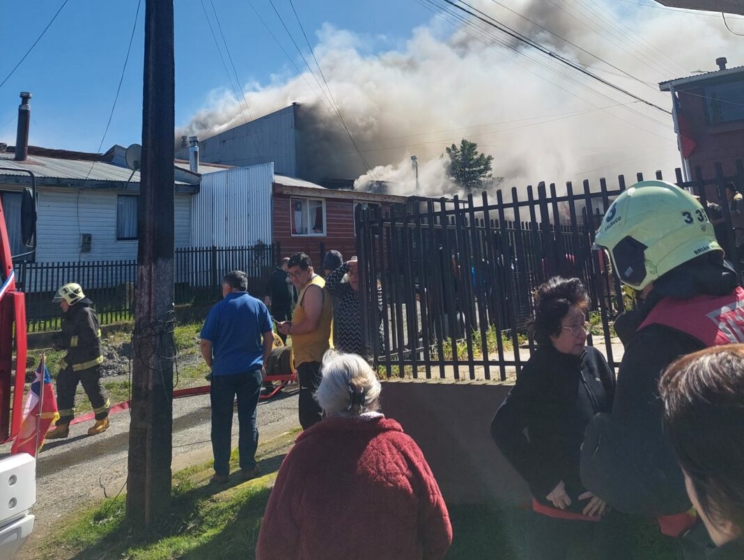 El siniestro se registró en el pasaje Lautaro de la población José Miguel Carrera y concitó la presencia de la totalidad de las compañías del Cuerpo de Bomberos de Calbuco.