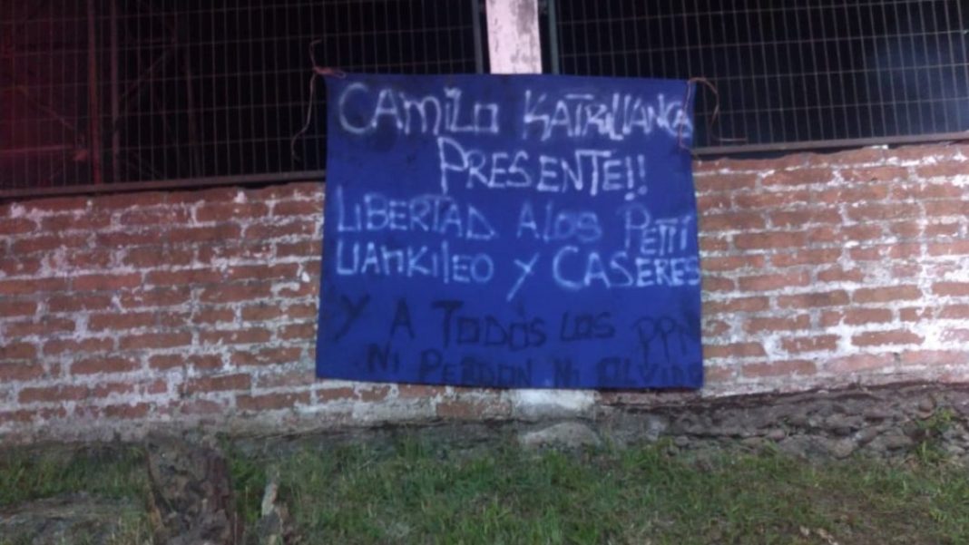 En las cercanías del lugar se encontraron rayados con consignas mapuche.