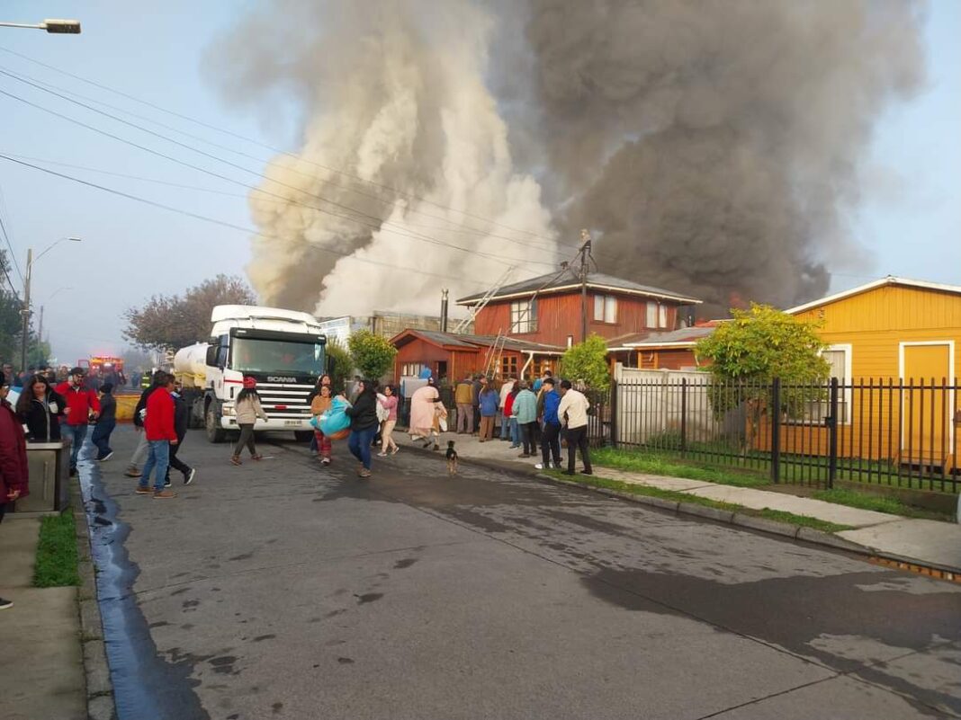 El fuego tuvo una rápida propagación debido al material almacenado en el local comercial, situación que deribó en la propagación a otras tres viviendas más. Bomberos de Entre Lagos cuenta con apoyo de personal de Osorno y Los Ríos, en un trabajo que aún se mantiene.