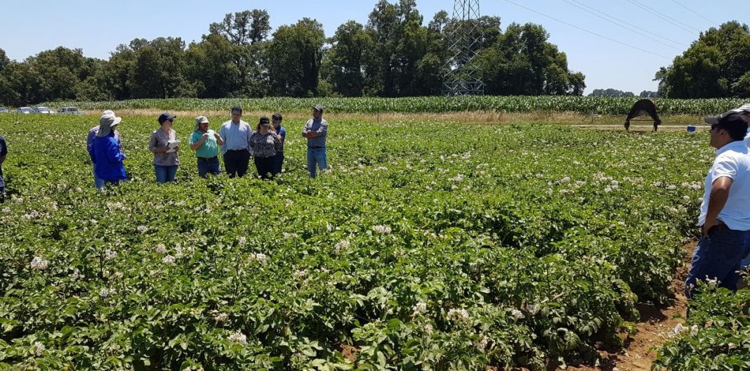 Cerca de 80 agricultores y profesionales del agro de las regiones de Los Lagos y Los Ríos participaron en Osorno de un día de campo convocado por el Instituto de Investigaciones Agropecuarias (INIA) donde se presentaron tecnologías de manejo sanitario del cultivo de papa, y que se enmarca en la ejecución de tres proyectos financiados por Fundación para la Innovación Agraria (FIA), todo esto enmarcado en la relevancia que toma el aumento de la incidencia y severidad de ataques de enfermedades y plaga en los cultivos producto del cambio climático. Al respecto, Ivette Acuña, investigadora de INIA Remehue, y organizadora de la actividad, comentó que la idea es tener información útil para prevenir estas enfermedades, las cuales se basan en lo que se hace día a día así como también en las investigaciones realizadas. Cabe decir que INIA entregó dos innovadoras tecnologías, tales como la plataforma de riesgo informado de enfermedades y el uso del pronóstico meteorológico en el sistema de alerta temprana para Tizón Tardío. De igual manera cabe resaltar que los proyectos FIA involucrados en este día de campo son: Desarrollo de una plataforma de nivel de riesgo como herramienta de apoyo a la toma de decisiones, basado en la cuantificación de inóculo para enfermedades de suelo en el cultivo de papa; Agregación de valor al sistema de Alerta de Tizón Tardío incorporando el pronóstico meteorológico y la interpolación espacial de los datos; y Desarrollo de un paquete de manejo integrado para bacteria en el cultivo de papa, basado en un método de cuantificación del potencial de infección latente y su expresión en campo, como medida de adaptación al riesgo sanitario frente al cambio climático.