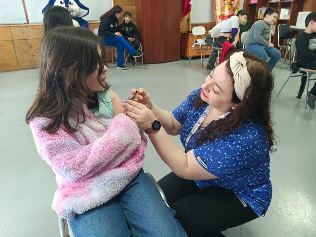 Joselyn Vargas, coordinadora académica del Colegio British School Patagonia, agradeció el despliegue para efectuar la vacunación en el recinto educativo que permite inmunizar a los menores contra una enfermedad bastante complejo.