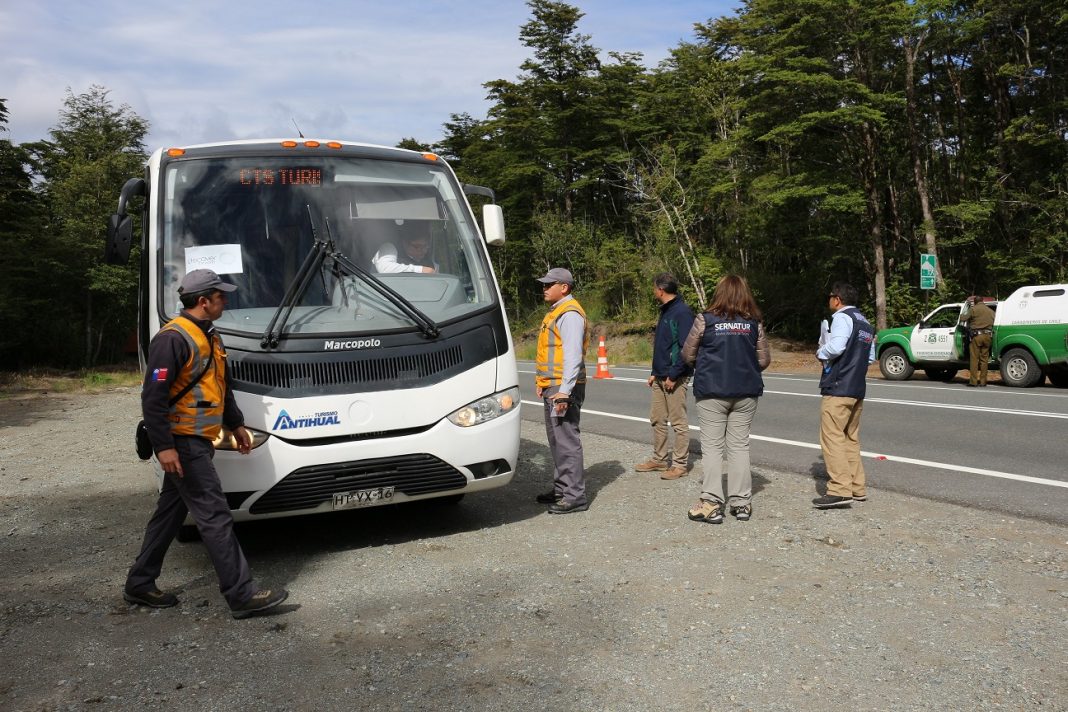 La Seremi de Transportes y el Servicio Nacional de Turismo de Los Lagos desarrollan de manera conjunta un programa anual de fiscalizaciones que busca brindar mayor seguridad en el servicio de transportes en lugares turísticos de la región. En ese contexto, Carabineros de la Tenencia de Ensenada y personal de Transportes, con el apoyo de funcionarios de Sernatur y Conaf, fiscalizaron al transporte de pasajeros y vehículos particulares en dicha localidad. El Seremi de Transportes, Nicolás Céspedes, informó que se revisaron las condiciones técnicas de los vehículos y los documentos, así como también las medidas sanitarias preventivas del covid-19.   Consignar que los buses de turismo deben cumplir con el Decreto 80 del Ministerio de Transportes, que obliga a tener una nómina de pasajeros y letreros que señalen que están realizando actividades turísticas, entre otras.   La directora regional de Sernatur, Paulina Ross, explicó que este es el tercer operativo que se realiza este año y son jornadas de fiscalización que aportan a la disminución del trabajo informal y a la prevención de delitos asociados a ello. En tanto, Conaf realiza un trabajo preventivo y de fiscalización para evitar, por ejemplo, incendios forestales y robo de árboles. Los funcionarios del organismo también velan por el buen comportamiento de los visitantes al interior de los parques, como en este caso el Parque Vicente Pérez Rosales, que permanece abierto de lunes a viernes de 8:30 a 18:00 horas y los días feriados y fines de semana cerrado por cuarentena. Las fiscalizaciones son permanentes y según comunicó Carabineros se intensificarán durante este fin de semana largo para los vehículos particulares con el fin de reducir la movilidad y prevenir el contagio de covid-19.