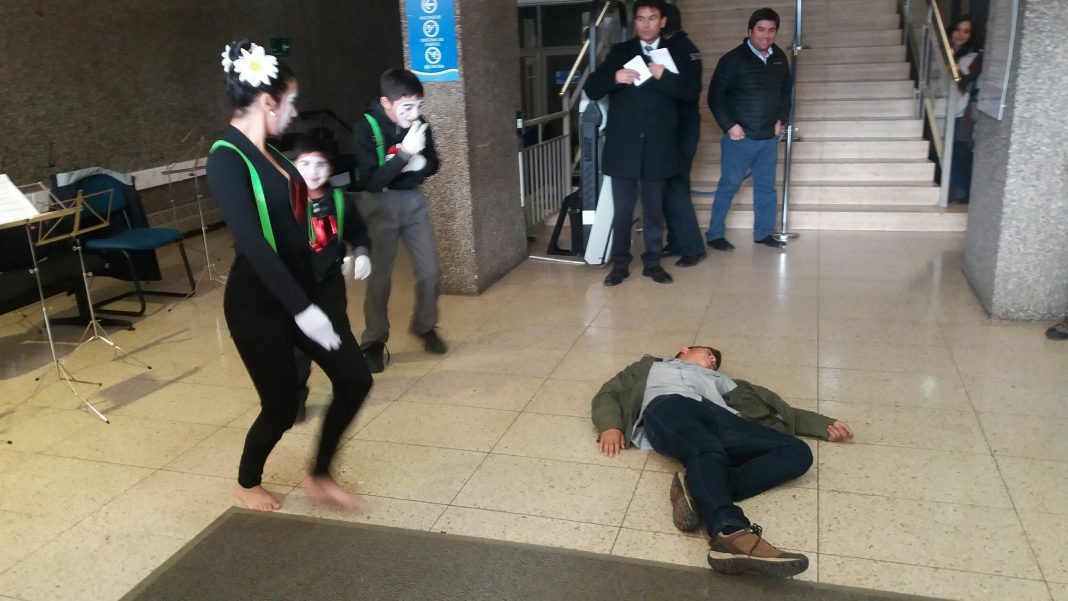Sorprendidos se mostraron los osorninos que efectuaban trámites en el Municipio cuando de improviso surgieron mimos, una orquesta y un cuerpo de baile para efectuar su intervención urbana que busca concientizar a la población para facilitar la donación de órganos.