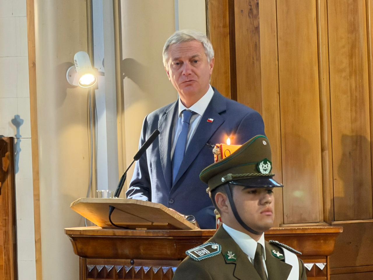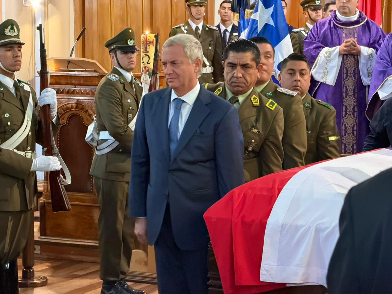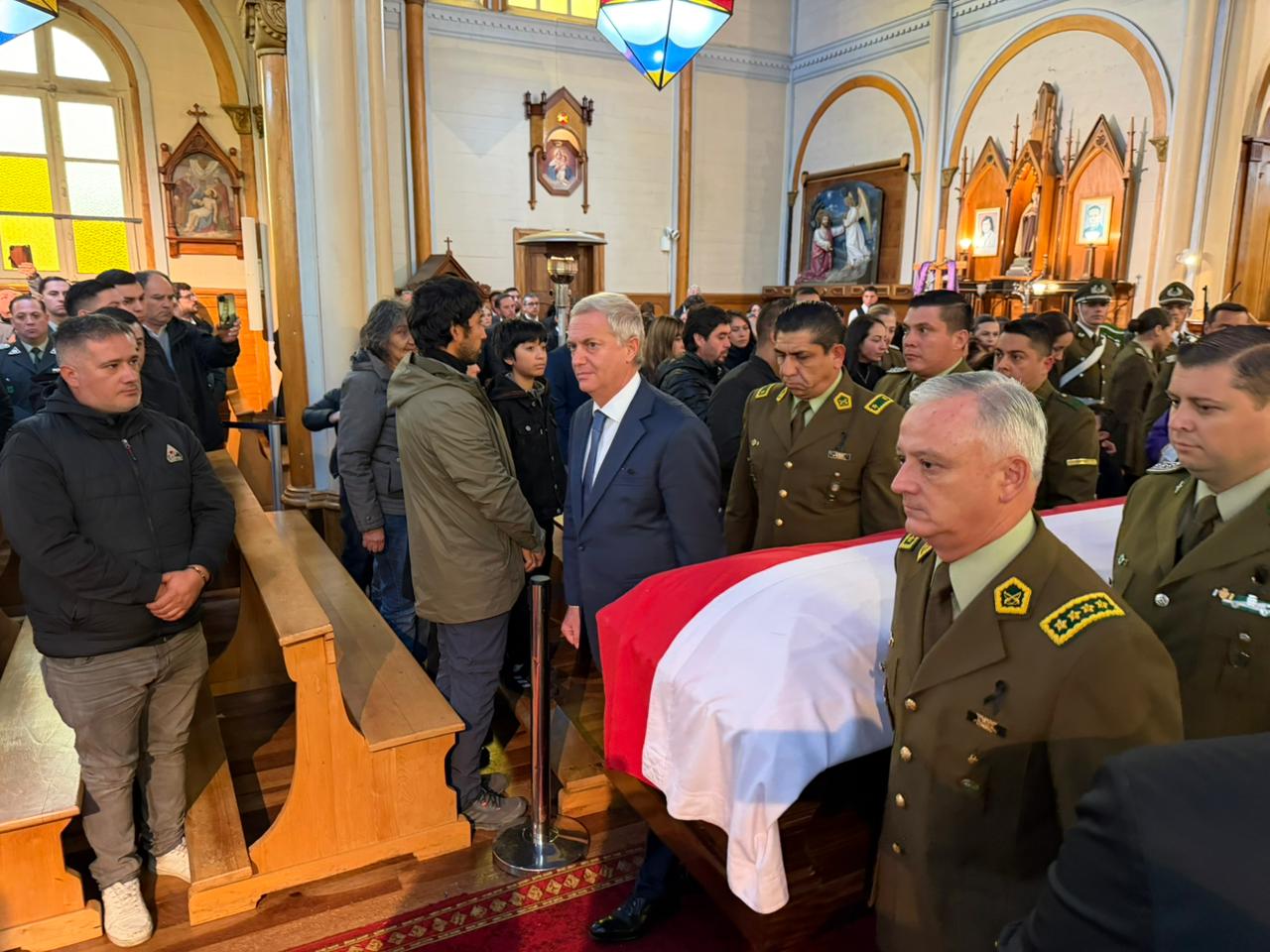 Este sábado 21 de marzo de 2026 el presidente José Antonio Kast encabezó la ceremonia fúnebre del nuevo mártir de Carabineros, Javier Figueroa Manquemilla, realizada en la parroquia Sagrado Corazón de Jesús, en la ciudad de Puerto Varas.