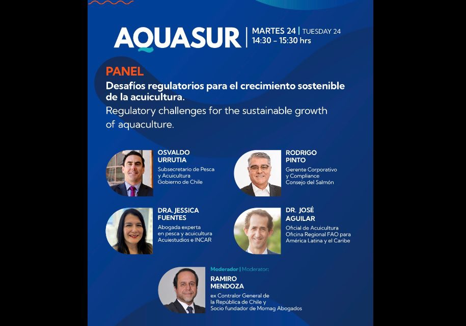 Posteriormente, será el turno de uno de los paneles más esperados (14.30 horas): “Desafíos regulatorios para el crecimiento sostenible de la acuicultura”, que contará con la participación del Subsecretario de Pesca, Osvaldo Urrutia, quien junto a expertos legales y representantes de la FAO, y bajo la moderación del ex contralor Ramiro Mendoza. Este espacio busca aterrizar el marco normativo con que se busca equilibrar la producción con la protección del ecosistema.