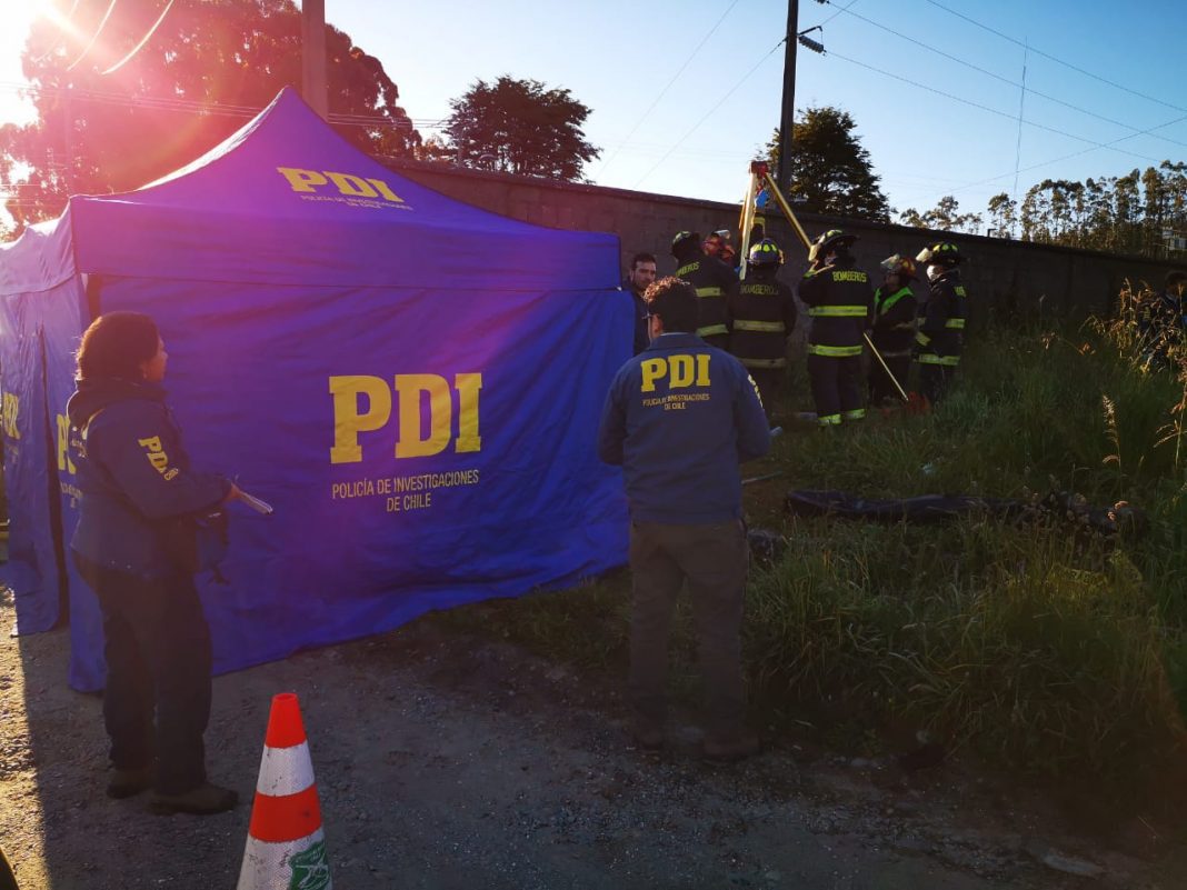 El cuerpo correspondiente a un hombre fue encontrado por una mujer durante las últimas horas al interior de un pozo con agua en un predio ubicado en plena ruta 5 sur con la ex línea férrea, dando aviso a carabineros, quienes aislaron el sitio del hallazgo. El Subprefecto de la Brigada de Homicidios de la PDI, Enrique Zamora, indicó que la Fiscalía instruyó a personal de la policía civil la realización de la investigación y peritajes en torno a este caso.   El Subprefecto Zamora, agregó que el cadáver está sin identificación y llevaba más de un día en el sector.   Junto a los exámenes externos y pericias al cadáver que realizó la Brigada de Homicidios, también se hizo un levantamiento de huellas para determinar su identidad. Posteriormente el cuerpo fue trasladado al Servicio Médico Legal para la autopsia correspondiente, para determinar la causa de muerte del hombre.
