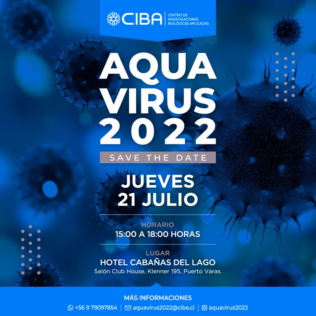 El Centro de Investigaciones Biológicas Aplicadas (CIBA) tiene el agrado de invitarlo (a) al seminario técnico AquaVirus 2022, evento que será una oportunidad para analizar la situación sanitaria en salmónidos, específicamente en las enfermedades virales endémicas presentes en Chile, como IPN, ISA y PRV. En este seminario expondrán los siguientes expertos: Dr. Fred Kibenge, de la UPEI (Canadá)Dr. Carlos Loncoman, investigador de la UACHDr. Jean Paul Lhorente, Thechnical and Breeding Manager de Benchmarck Dr. Marcos Godoy, director técnico de CIBA e investigador de la USS.Esta importante actividad científica y ligada al rubro salmonero se realizará el día 21 de julio, entre las 15 y 18 horas, en el salón Club House, del hotel Cabaña del Lago, de la comuna de Puerto Varas. Para consultas e inscripciones enviar correo electrónico a [email protected]