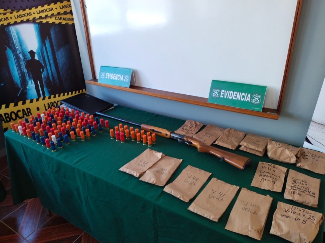 una escopeta y municiones de calibre 5.56, las cuales fueron encontradas en uno de los