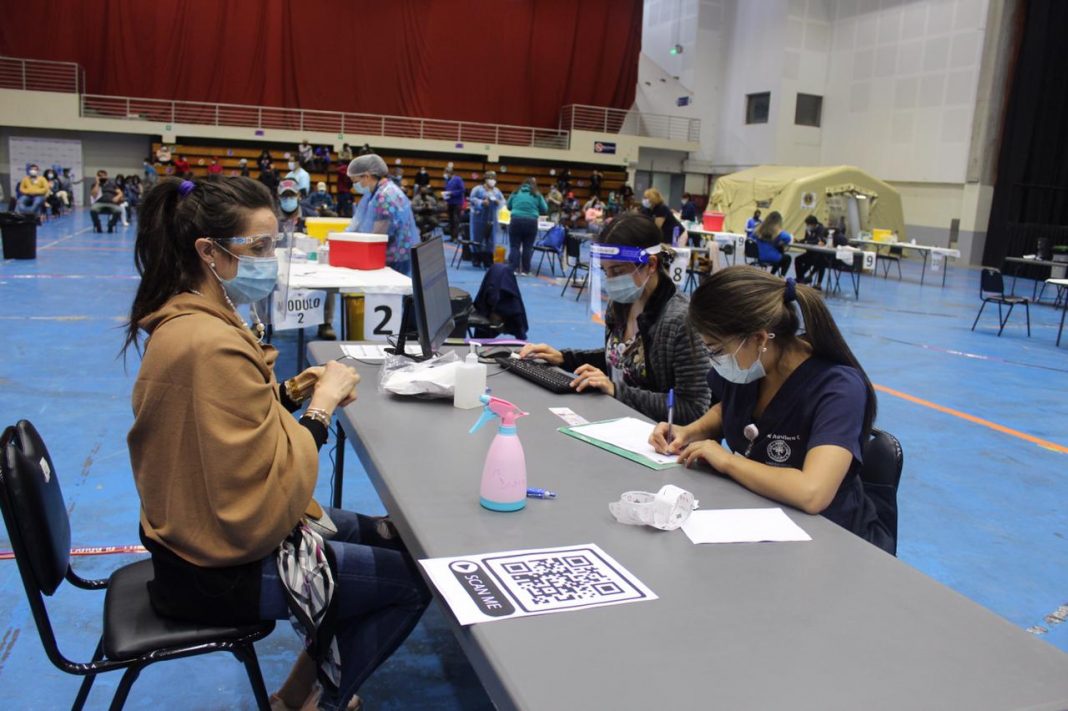 La Gobernadora de la Provincia de Llanquihue, Leticia Oyarce, junto al Seremi de Salud de la Región de Los Lagos, Alejandro Caroca se trasladaron hasta el recinto Arena Puerto Montt, para verificar el proceso en uno de los principales centros de vacunación de la zona.