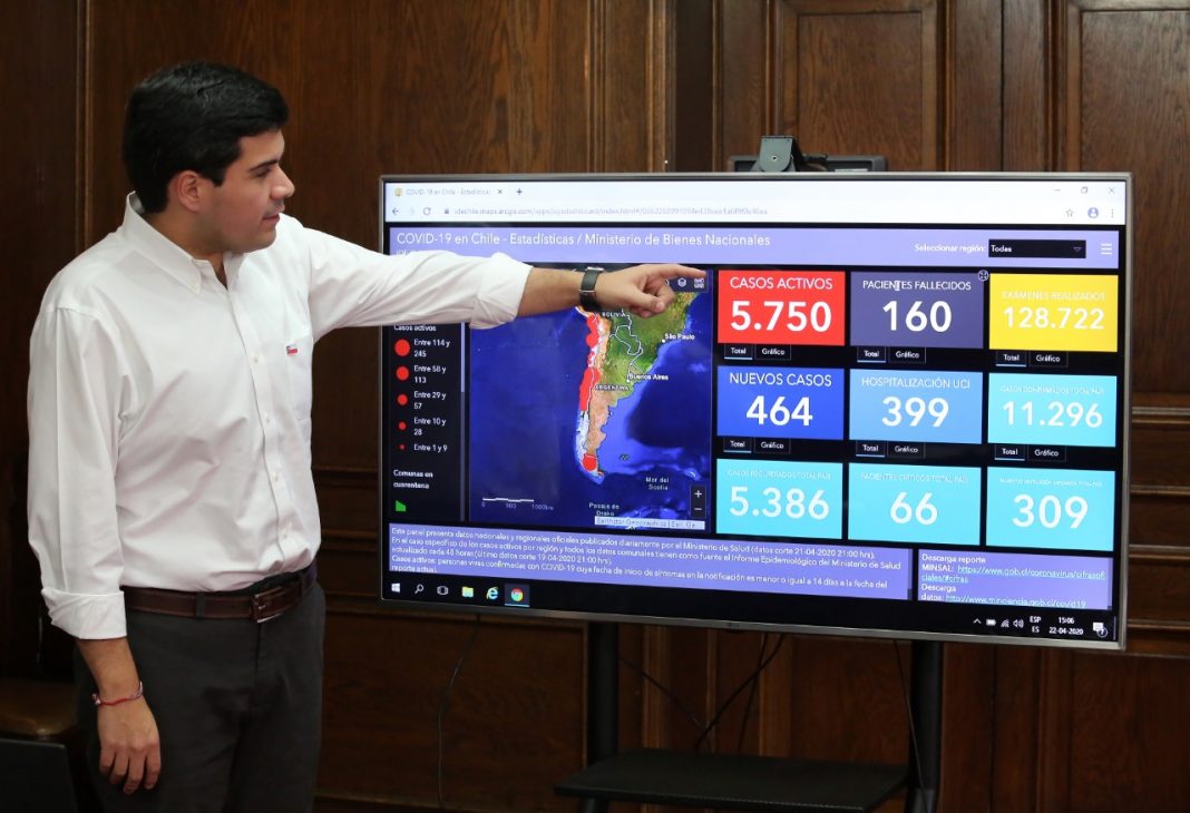 Con el objetivo de facilitar el acceso a la información disponible sobre el Covid-19 en nuestro país, el ministro del Interior, Gonzalo Blumel, y el ministro de Bienes Nacionales, Julio Isamit, anunciaron esta mañana en La Moneda, un Visor Territorial abierto a la ciudadanía con toda la información oficial del Ministerio de Salud, al que se podrá acceder desde el sitio oficial del gobierno gob.cl y desde la web del ministerio bienesnacionales.cl