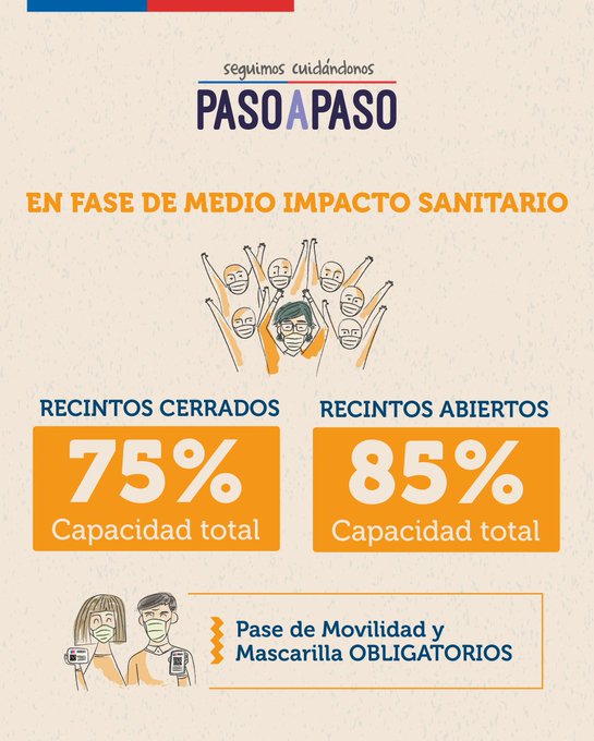 La autoridad sanitaria advirtió que «la pandemia sigue, pero hoy tenemos condiciones que nos permiten ir adquiriendo más libertades como sociedad. ¿De qué depende que avancemos? de la capacidad que tengamos de vacunarnos y cuidarnos». Además, recalcó que para cada una de estas actividades sigue siendo obligatoria la mascarilla, el pase de movilidad y se debe intentar mantener la distancia con otras personas.