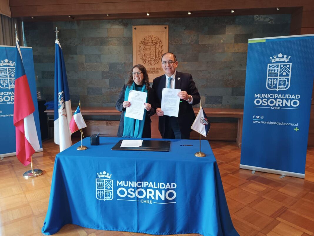En las dependencias de la casa edilicia se suscribió el Convenio de Fondo de Apoyo a la Educación Pública. Este convenio por cerca de 930 millones de pesos viene desde el Ministerio de Educación a través de la Dirección de Educación Pública y se entrega a los distintos municipios, esta vez en beneficio a los recintos de la comuna de Osorno.El alcalde de Osorno, Emeterio Carrillo, sostuvo que este dinero permitirá seguir avanzando y trabajando no sólo del punto de vista pedagógico, sino que también a través de la infraestructura.Por su parte la Subsecretaria de Educación, Alejandra Arratia, indicó que la misión es que los recursos sean traspasados al municipio de Osorno lo antes posible.El jefe comunal osornino, aprovechó la instancia para plantearle a la Subsecretaria de Educación los problemas que vive la comunidad educativa del Liceo Carmela Carvajal de Prat, el cual continúa paralizado en torno a su reconstrucción.
