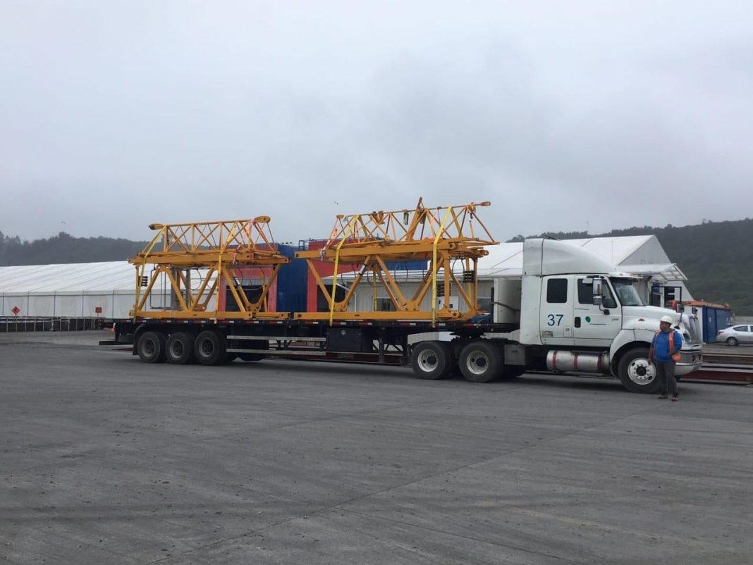 Se trata de cuatro retroexcavadoras, tres generadores, un cargador, una grúa hidráulica, una grúa torre y una grúa horquilla, que llegaron al puerto de la empresa Oxxean, en Puerto Montt y que fueron trasladadas para su almacenamiento en el sector norte de las faenas del puente sobre el Canal de Chacao.
